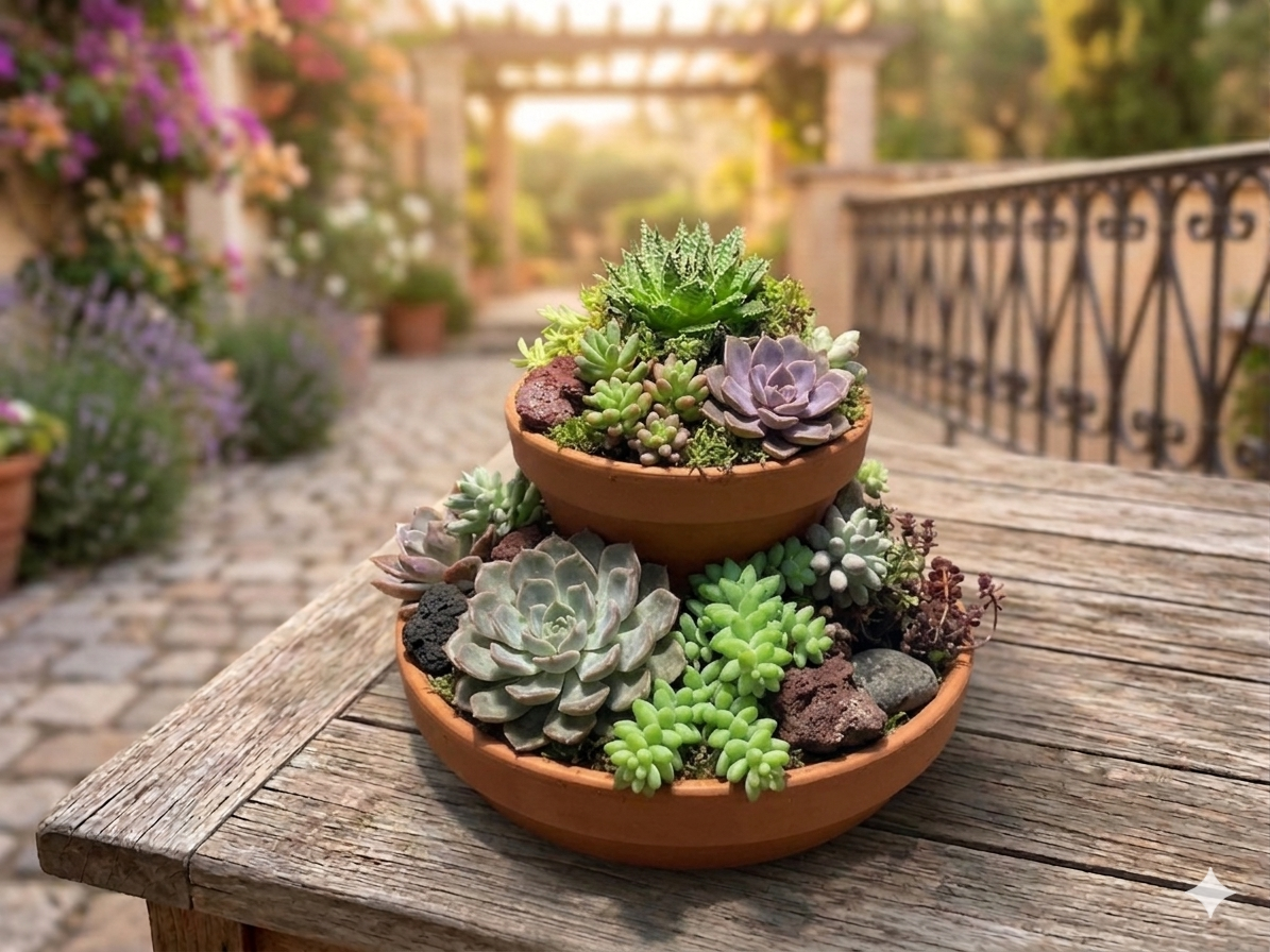 Living Succulents, A Tiered Garden CenterpieceLiving Succulents, A Tiered Garden Centerpiece